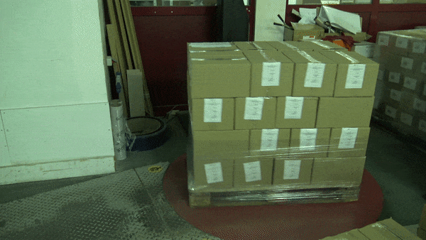Nous emballons la palette de manière à avoir 5 à 10 couches de film étirable autour.